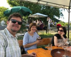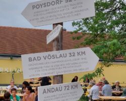 Am 12. Juni traf sich eine kleine Gruppe wanderfreudiger Mitglieder bei der Wiener Oper, um gemeinsam mit der Badener Bahn bis Guntramsdorf zu fahren, wo wir, geleitet von unserem “Wanderführer” Ivo Dürr, den Einstieg zum landschaftlich schönen “Wasserleitungsweg” fanden. Bei prachtvollem frühsommerlichen Wetter ging es durch die Weinrieden auf einem aussichtsreichen Wanderweg vorbei an wenig bekannten Sehenswürdigkeiten, wie dem Freigut Thallern und der Weinbergkapelle, und dem einen oder anderen Weingarten-Heurigen bis zum malerischen Weinort Gumpoldskirchen, wo wir in einem gemütlichen Heurigen eine erste Rast einlegten. Nach der Stärkung ging es weiter auf dem Weg durch die Weinberge bis Pfaffstätten. Nach gut zweieinhalb Stunden Wanderung bei doch schon recht großer Hitze freuten sich alle auf den Abschluss im schattigen Gastgarten eines Paffstättner Heurigenlokas, bevor es mit der Bahn wieder zurück nach Wien ging.