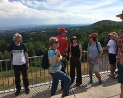 Am 26. Mai traf sich eine Gruppe wanderfreudiger Mitglieder am Wiener Hauptbahnhof, um nach einem kurzen Fahrt mit der Schnellbahn die Region um den Laaer Berg zu erkunden. Unser Wanderführer Ivo Dürr führte uns durch eine Parklandschaft mit weitem Blick über Wien zum Böhmischen Prater mit seinen historischen Fahrgeschäften – und weiter durch Wald und Feld an bunten Blumenwiesen und Weinrieden vorbei bis nach nach Oberlaa, wo wir am Schluss in einem gemütlichen Heurigen einkehren.