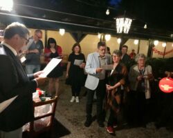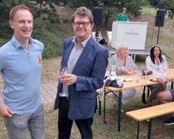 Die 1. Augustfeier 2022 wurde, wie schon 2021, beim Heurigen Schübel-Auer in Nussdorf abgehalten, auch aufgrund der überaus positiven Rückmeldungen unserer Mitglieder. Diesmal hatten wir allerdings mehr Glück mit dem Wetter und die ungefähr 80 Mitglieder und Gäste, darunter auch viele neue und jüngere Gesichter, konnten bei Sonnenschein im romantischen, baumbestandenen Innenhof des Heurigen feiern. Nach dem “Apéro” wurde der „offizielle Teil“ der Bundesfeier bewusst reduziert, die Botschaft des Schweizer Bundespräsidenten Ignacio Cassis vom Präsidenten verlesen, gefolgt von den Grussworten des Generalsekretärs des Dachverbands der ausländischen Vereine in Österreich, Walter Gerbautz. Damit blieb unseren Mitgliedern viel Zeit, um sich dem ausgezeichneten Buffet und der Unterhaltung mit den anderen Gästen zu widmen, was der guten Stimmung sichtlich zuträglich war. Mit Einbruch der Dunkelheit wurde der „Schweizerpsalm“ intoniert, als Höhepunkt und (langsamen) Abschluss unserer diesjährigen Bundesfeier, für die wir auch diesmal viel positive Resonanz bekamen. Ein herzlicher Dank an dieser Stelle an alle unsere Gäste und Mitglieder für die aktive Teilnahme!