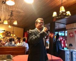 Nach zwei Jahren fand endlich wieder die 1. Augustfeier statt, diesmal beim Heurigen “Schübel-Auer” in Nußdorf. Obwohl wir aufgrund des nassen Wetters nicht im Freien feiern konnten, war es ein freudiges Zusammensein, zu dem sich fast 70 Mitglieder versammelten. Nach der Begrüßung durch den neuen Präsidenten, Ivo Dürr, und unserer Ehrenpräsidentin Anita Gut, überbrachte Botschaftsrat Gregor Fritsche die Grußworte der Schweizerischen Botschaft. Die 1. Augustansprache unseres Bundespräsidenten Guy Parmelin an die Auslandschweizergemeinschaft wurde in erfrischender Weise von Naomi Jenny vorgetragen. Auch das leibliche Wohl kam nicht zu kurz: Das Buffet und die Weine des “Schübel-Auer” fanden regen Zuspruch. Den stimmungsvollen Abschluss bildete das gemeinsame Absingen des Schweizerpsalms in der kühlen Abendluft im Schein der Lampions unserer Kinder.