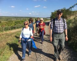 Für diese Wanderung am 3. Oktober 2021, gemeinsam organisiert mit dem Schweizer Unterstützungsverein, traf sich ein kleines Grüppchen Wanderbegeisterter im Wiener Hauptbahnhof, unter ihnen unsere Konsulin Beatrice Jäger-Louis, um zusammen mit der S-Bahn in Richtung Neusiedlersee zu fahren. Geführt von Regula Sennhauser und Ivo Dürr ging es bei prächtigem Herbstwetter vom Bahnhof Jois “bergauf” auf einem gemütlichen Wanderweg durch die Weingärten bis zum 199 Meter “hohen” Hackersberg, der eine vielfältige Vegetation und eine prächtige Fernsicht über den Neusiedlersee bot. Nach kräftigem, kurzen Abstieg gelangten wir nach Winden, wo Pause im Garten eines gemütlichen Heurigen etwas länger als geplant dauerte – aber der “Sturm”, die “Somloer Nockerln” und die flaumigen Buchten mit Vanillesosse waren einfach zu köstlich. Bestens gestärkt ging es zurück zum Ausgangsort Jois, wo vor der Rückfahrt nach Wien immerhin noch etwas Zeit für ein “Fluchtachterl” blieb.