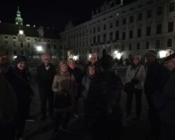 Geleitet von unseren Vorstandsmitglied Nadia Brülisauer war am Freitag, 15. Oktober 2021 eine Wien-Führung mit “Gruselfaktor” angesagt! Die Teilnehmerinnen und Teilnehmer trafen sich beim “Schweizer Stammwirt” im Chamäleon in der Blutgasse, um anschließend gestärkt zum Treffpunkt beim Schweizertor im Inneren Burghof (Hofburg) zu gehen. Dort wurden sie von der Stadtführerin erwartet, die in den zwei Stunden von 22:00 Uhr bis zur Geisterstunde um 24:00 Uhr die Gruppe an die Schauplätze alter Sagen und Legenden führte und spannende Geschichten rund um Tod, Teufel und Vampirismus in Wien erzählte; eine für alle interessante und lehrreiche Nachttour!