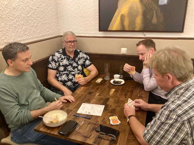 Dieser fand am 29. Januar 2025 nicht, wie geplant, in unserem Clublokal sondern im Restaurant „Zum Kuckuck“ statt, das sich langsam als„Nachfolger des Chamäleon“ etabliert und auf der Speisekarte diverse Schweizer Spezialitäten anbietet. Nach dem währschaften Fondue, das einige der Jasser vorab zur Stärkung genossen, wurde es ein so vergnügliches Jassen an drei Tischen, dass einhellig beschlossen wurde, ab nun regelmässig alle zwei Monate einen „Zischtig-Jass“ abzuhalten, und zwar am 25. März 2025, am 27. Mai 2025, am 29. Juli 2025, am 23. September 2025 und am 25. November 2025. PS: Eine Anmeldung dazu bis spätestens drei Tage vorher an vorstand@schweizergesellschaft.at ist unbedingt nötig, um Ort und Platz rechtzeitig reservieren zu können.