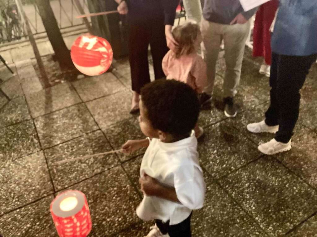 Nach der Begrüssung durch den Präsidenten des Vereins und einer kurzen Ansprache unserer neuen Botschaftsrätin Stefanie Diame wurde das Buffet eröffnet. Trotz oder vielleicht gerade wegen des „full house“ war die Stimmung unter den Mitgliedern ausgezeichnet. Mit Einbruch der Dunkelheit kamen unsere Kleinen an die Reihe: Die Kerzen der Lampions wurden angezündet und im Schein der Lampions sangen die Erwachsenen mit mehr oder weniger Mühe, aber doch erkennbar, den Schweizerpsalm und „Le vieux Chalet“. Dies war dann für die ersten Gäste das Zeichen zum Aufbruch, doch die letzten ließen sich noch ausgiebig Zeit….
